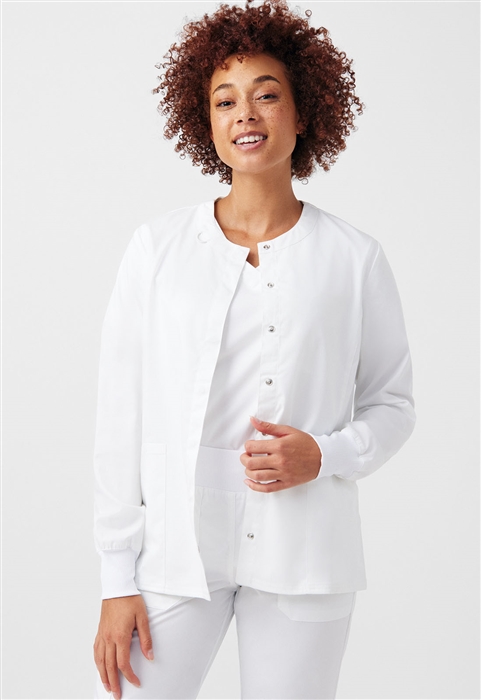 Shop Landau ProFlex Women’s Snap-Front Scrub Jackets for stylish and functional medical scrubs with customization options.
