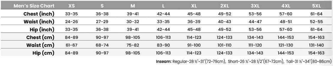 2XL, 3XL, 4XL, 5XL, XL, XS, L, M, S