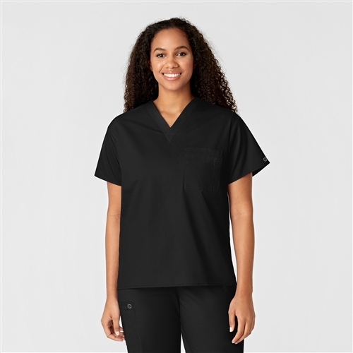 Elevate your workwear with the WonderWORK Unisex V-Neck Scrub Top by WonderWink, designed to provide both style and comfort for healthcare professionals. These modern medical scrubs feature a tailored fit that moves away from the traditional boxy shape, ensuring a polished appearance while maintaining flexibility for all-day wear.