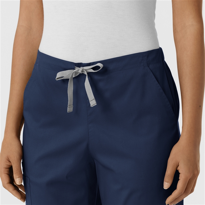 Elevate your workwear with the WonderWORK Women’s Cargo Jogger Scrub Pants by WonderWink. Designed for comfort and functionality, these medical scrubs are perfect for any healthcare professional looking for style and practicality. With a mid-rise jogger style featuring an adjustable drawstring, these nursing scrubs ensure a secure fit while providing ample storage with six strategically placed pockets.