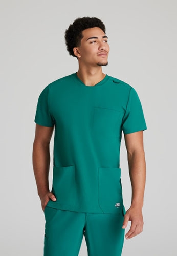 Skechers by Barco Men's Scrub Top in multiple colors, eco-friendly healthcare uniform.